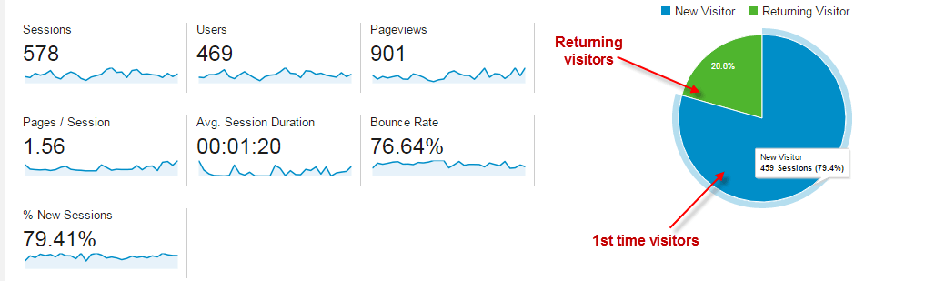 If this value is over 20% then it means you are beginning to establish trust with your visitors and they are coming back seeking more content on your blog.