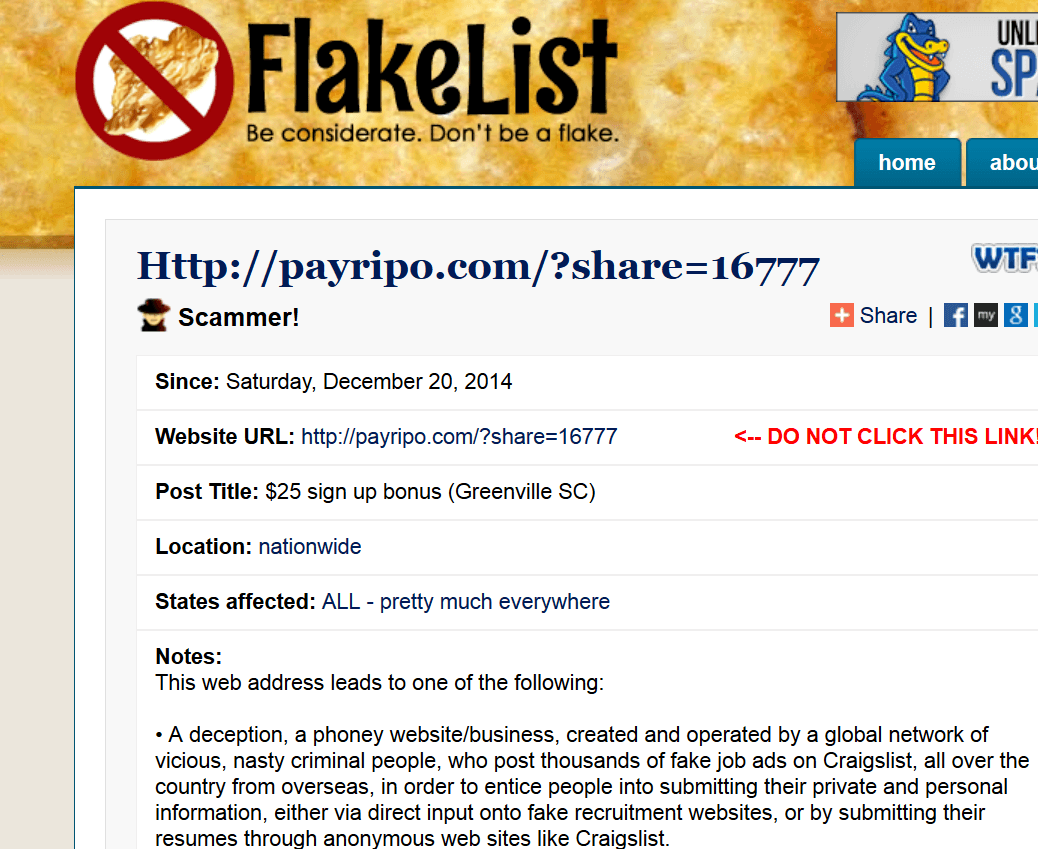 As an aside, Fakelist lists several of these affiliate links on their website. I am not sure why they just simply didn't ban the website itself, i.e., PayRipo.com.