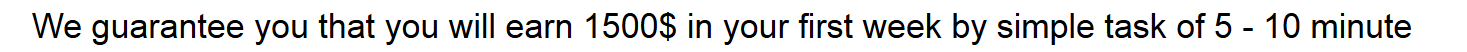 "We guarantee that you will earn $1500 in your first week by simple tasks of 5-10 minutes"