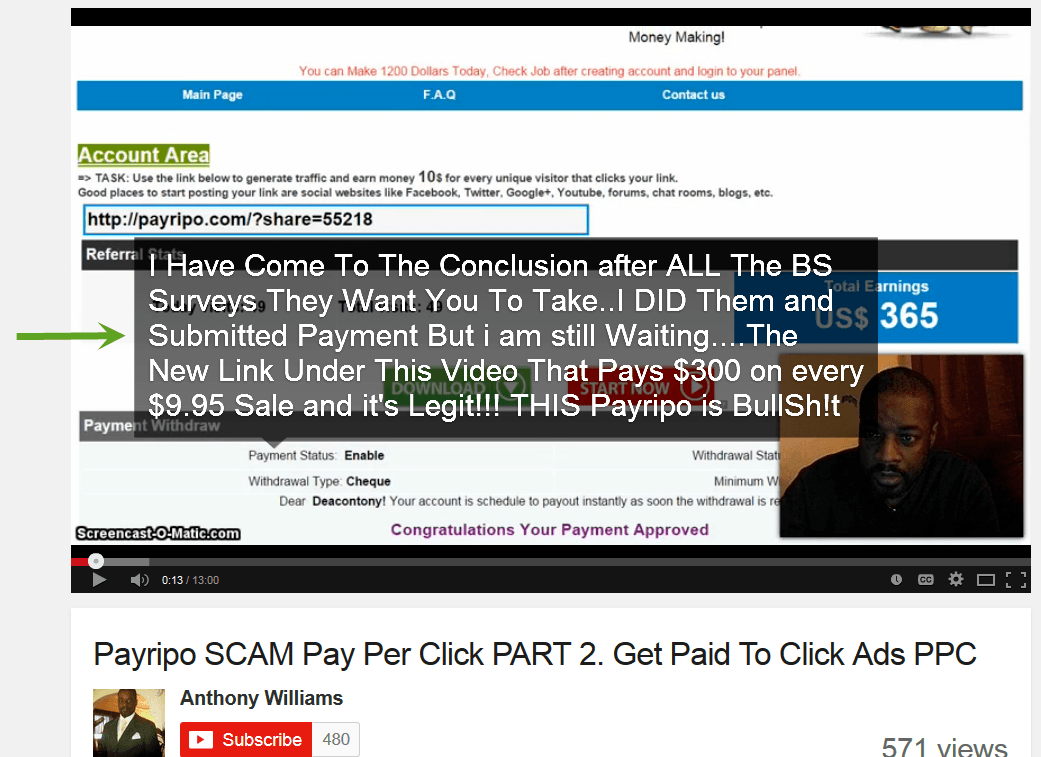 This guy made an initial video stating that the program made him all kinds of money. Then he did a following up video stating that he never got paid and that the whole thing is BS.